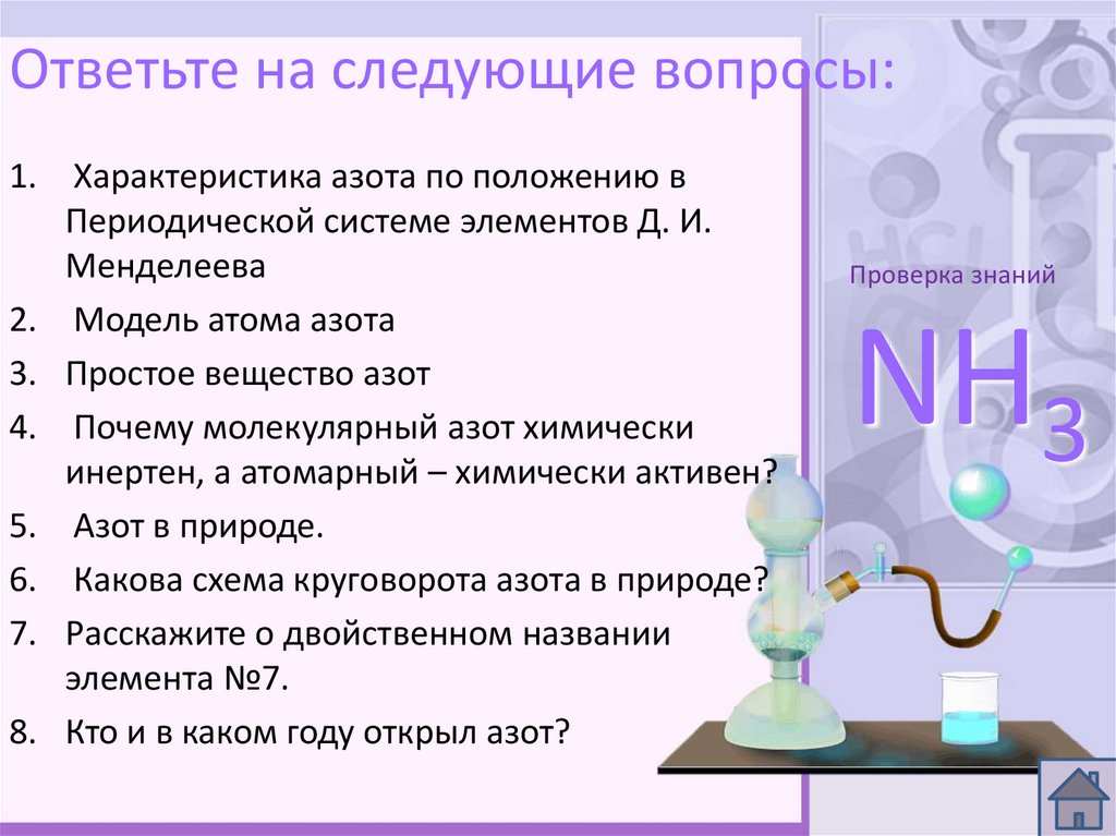 Ответьте на следующие вопросы:1. Характеристика азота по положению в