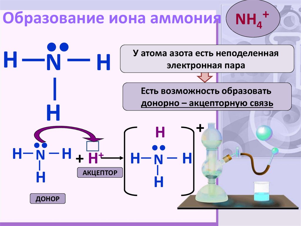 Образование иона аммония NH4+H