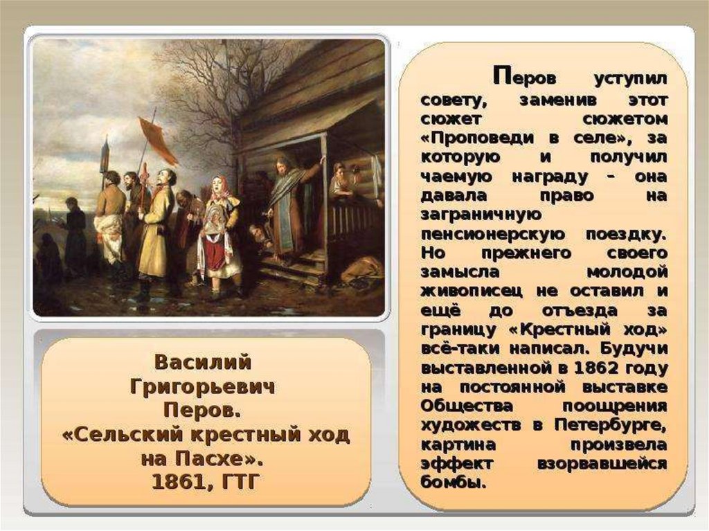 Василий Григорьевич Перов, картины "Чаепитие в Мытищах, близ Москвы", "Сельский крестный ход на Пасхе"