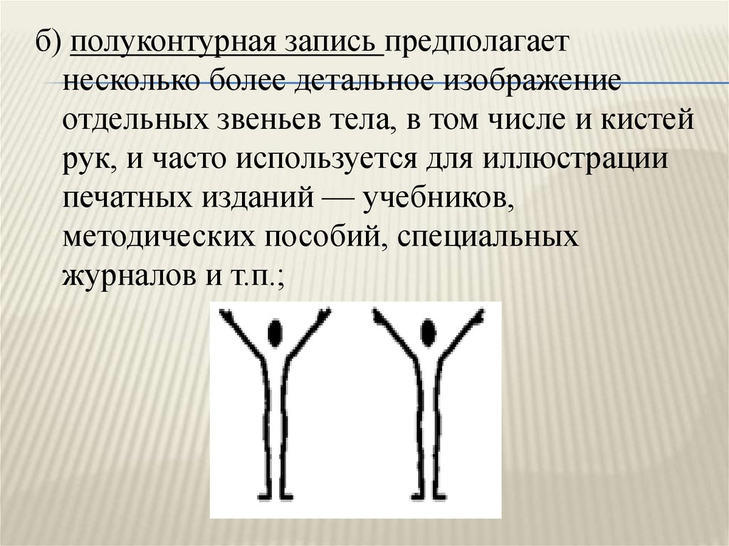 б) полуконтурная запись предполагаетнесколько более детальное изображение