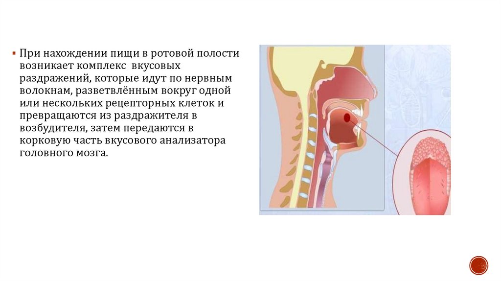 При нахождении пищи в ротовой полостивозникает комплекс вкусовых