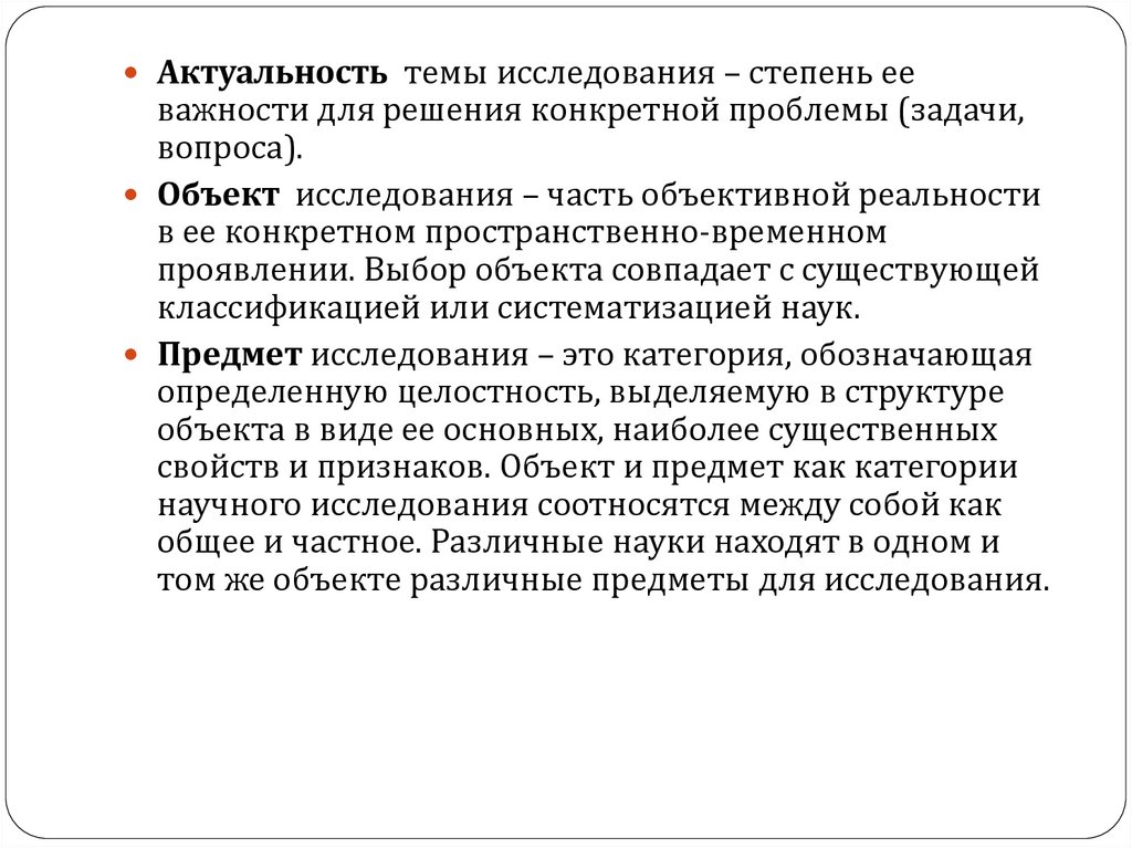 Предмет исследования – это категория, обозначающая