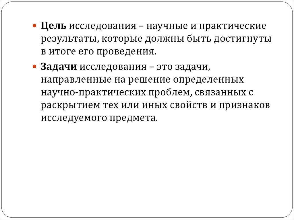 Цель исследования – научные и практическиерезультаты, которые должны быть достигнуты