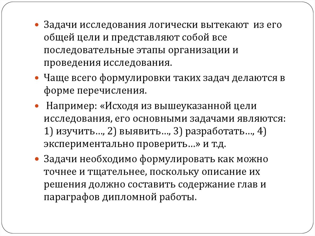 Задачи исследования логически вытекают из егообщей цели и представляют собой все