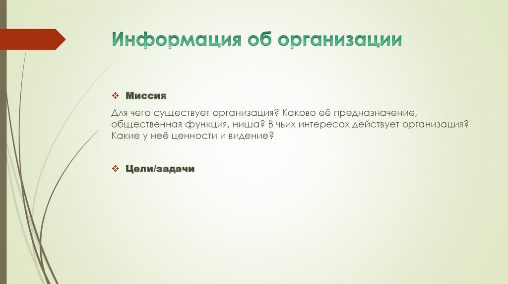 МиссияДля чего существует организация? Каково её предназначение,