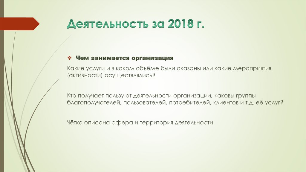 Чем занимается организацияКакие услуги и в каком объёме были оказаны или какие мероприятия