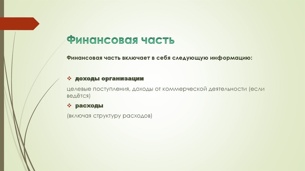 Финансовая часть включает в себя следующую информацию:доходы организации