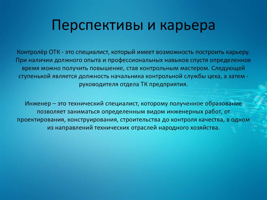 Перспективы и карьераКонтролёр ОТК - это специалист, который имеет возможность построить карьеру.