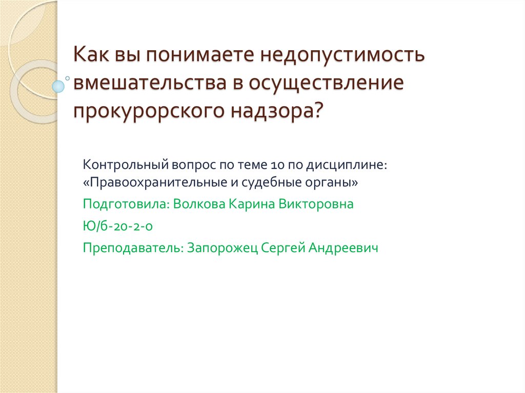 Недопустимость вмешательства в осуществление прокурорского надзора