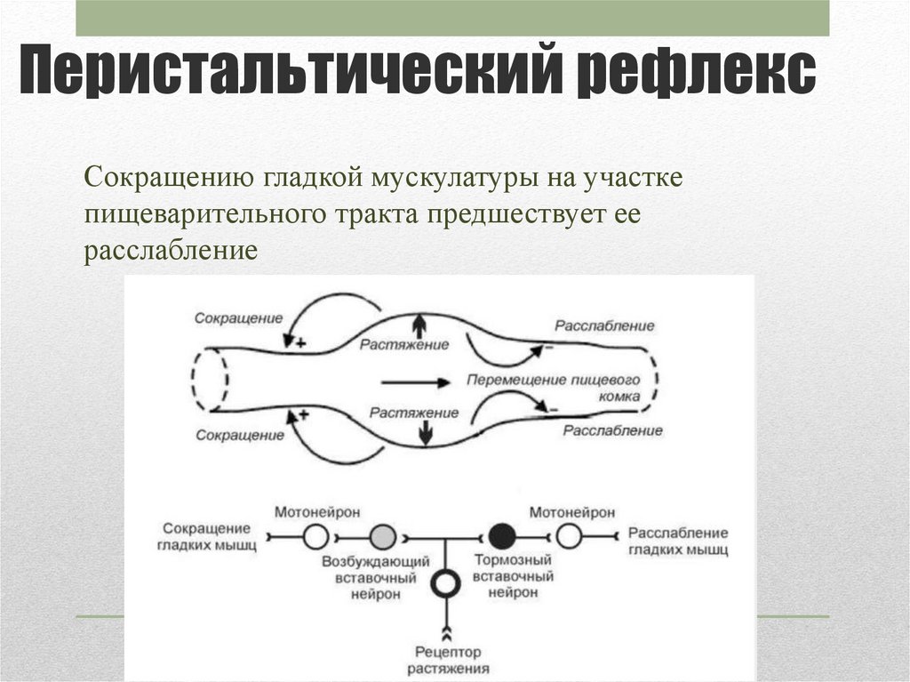 Перистальтический рефлексСокращению гладкой мускулатуры на участке