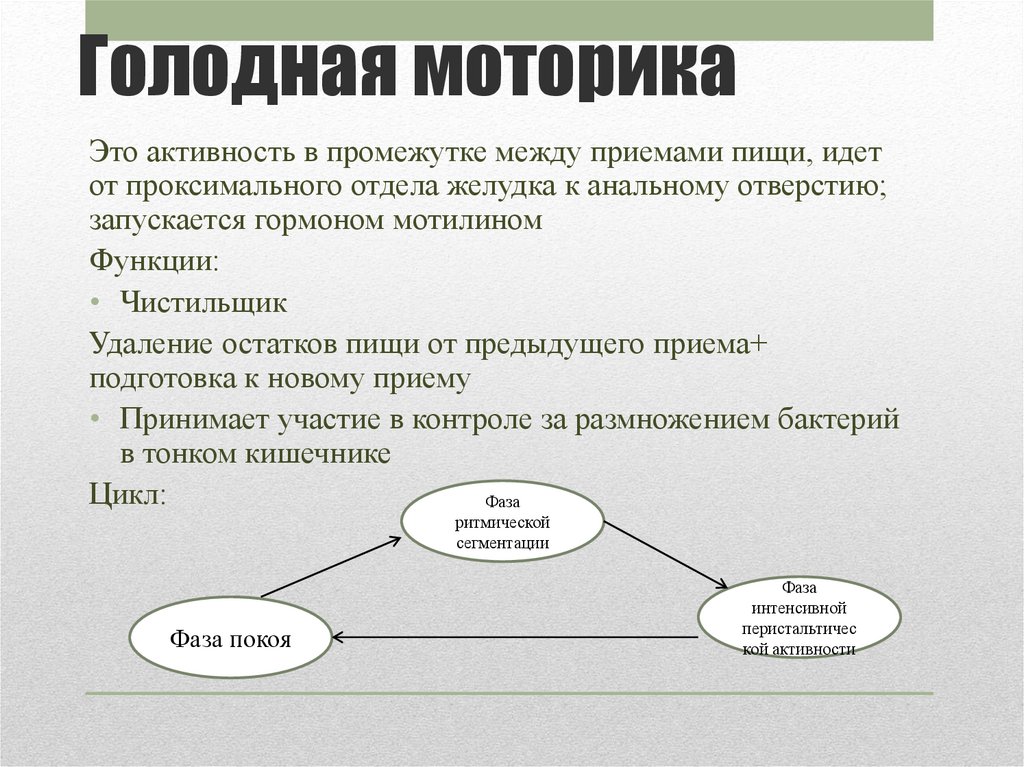 Голодная моторикаЭто активность в промежутке между приемами пищи, идет