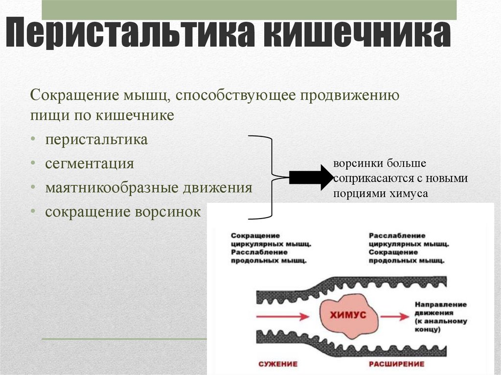 Перистальтика кишечникаСокращение мышц, способствующее продвижению