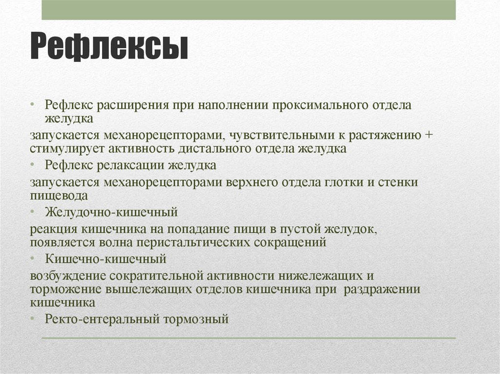 Рефлексы• Рефлекс расширения при наполнении проксимального отдела