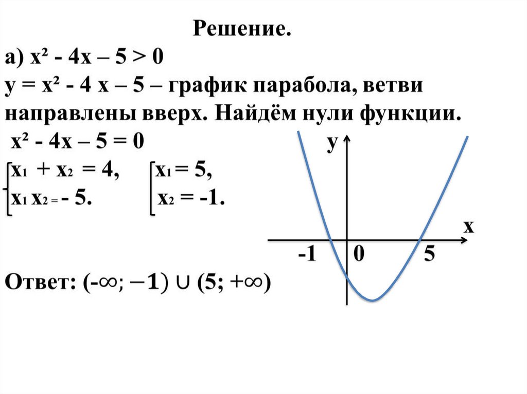 1. Решите неравенства.а) х² - 4х – 5 > 0;