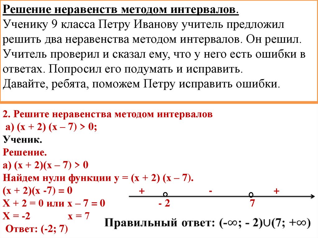 Решение неравенств методом интервалов.Ученику 9 класса Петру Иванову учитель предложил