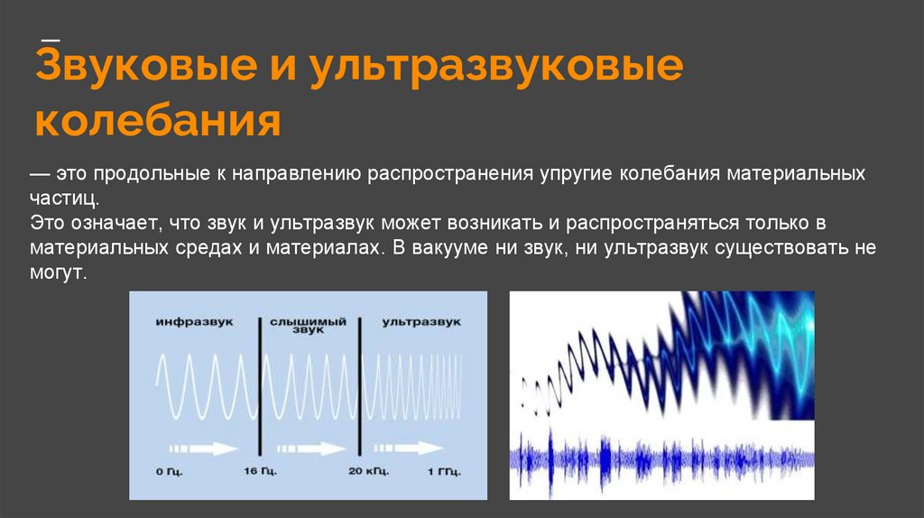 материальных средах и материалах. В вакууме ни звук, ни ультразвук существовать не