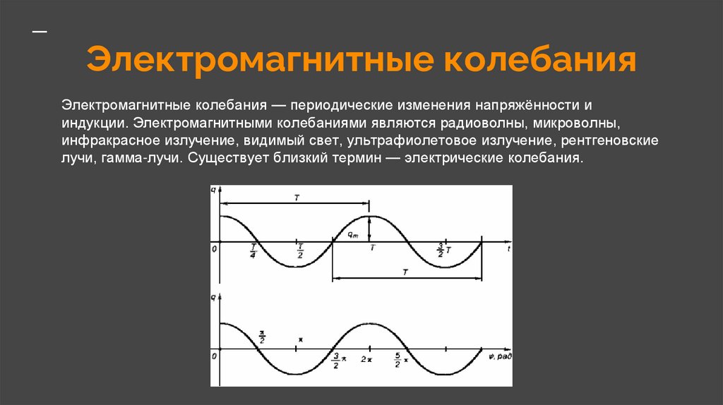 Электромагнитные колебанияЭлектромагнитные колебания — периодические изменения напряжённости и