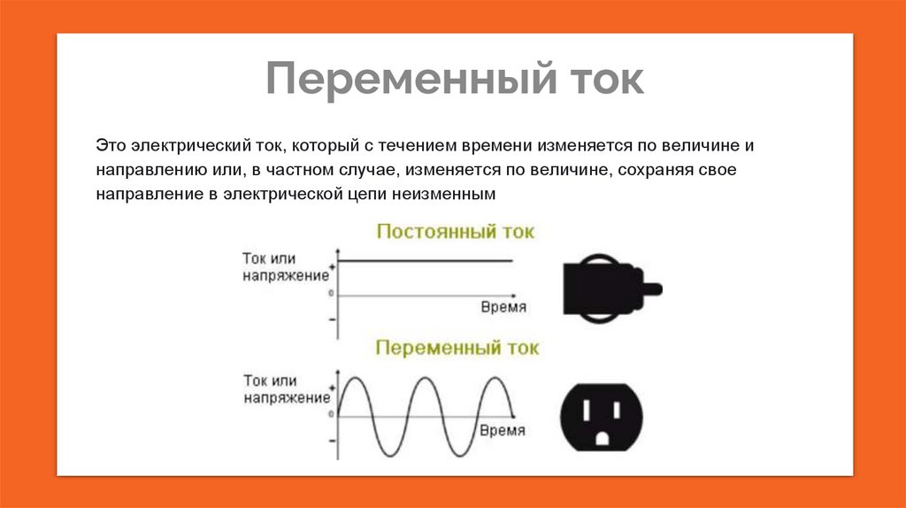 Переменный токЭто электрический ток, который с течением времени изменяется по величине и