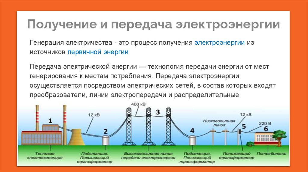Получение и передача электроэнергииГенерация электричества - это процесс получения электроэнергии из