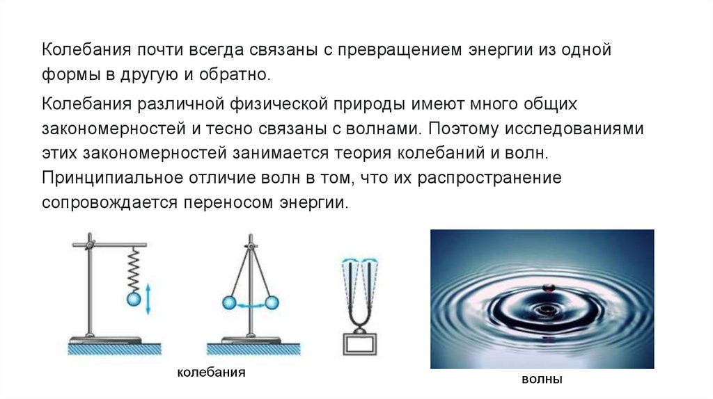 Колебания почти всегда связаны с превращением энергии из однойформы в другую и обратно.