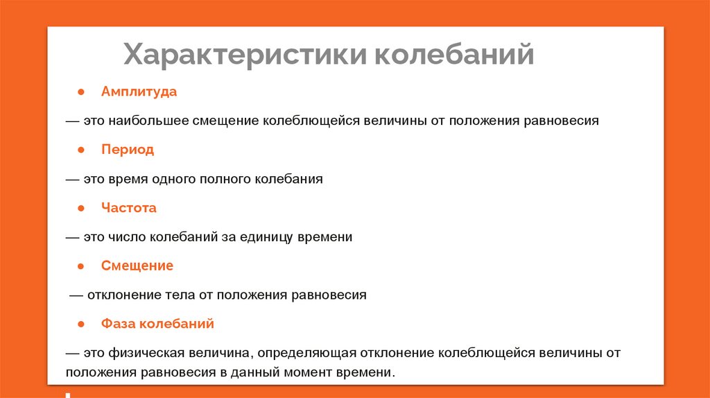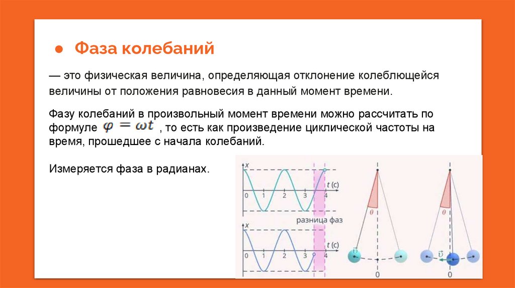 ● Фаза колебаний— это физическая величина, определяющая отклонение колеблющейся