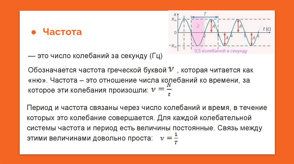 «ню». Частота – это отношение числа колебаний ко времени, за