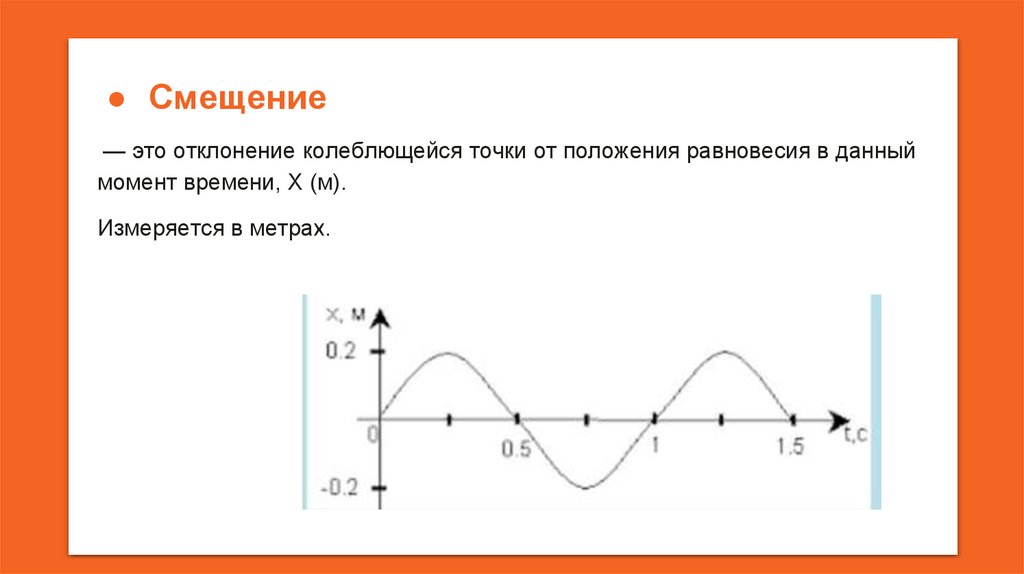 ● Смещение— это отклонение колеблющейся точки от положения равновесия в данный