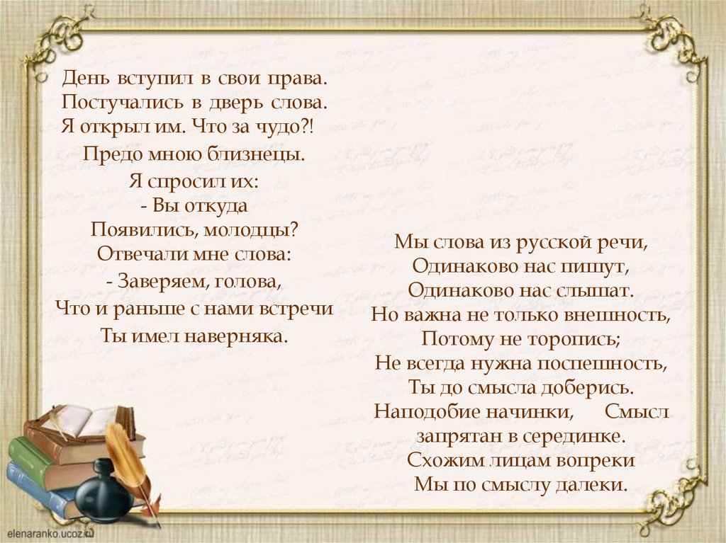 И совершенно точно без словаря вам будеттрудно разобраться в следующем стихотворении.