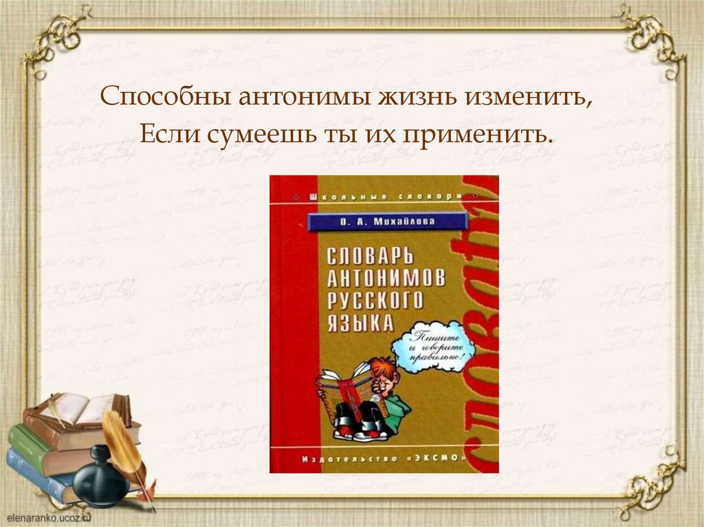 Способны антонимы жизнь изменить,Если сумеешь ты их применить.