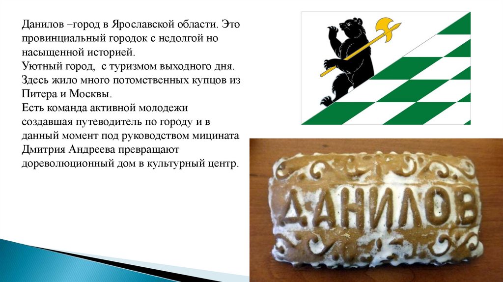Данилов –город в Ярославской области. Этопровинциальный городок с недолгой но