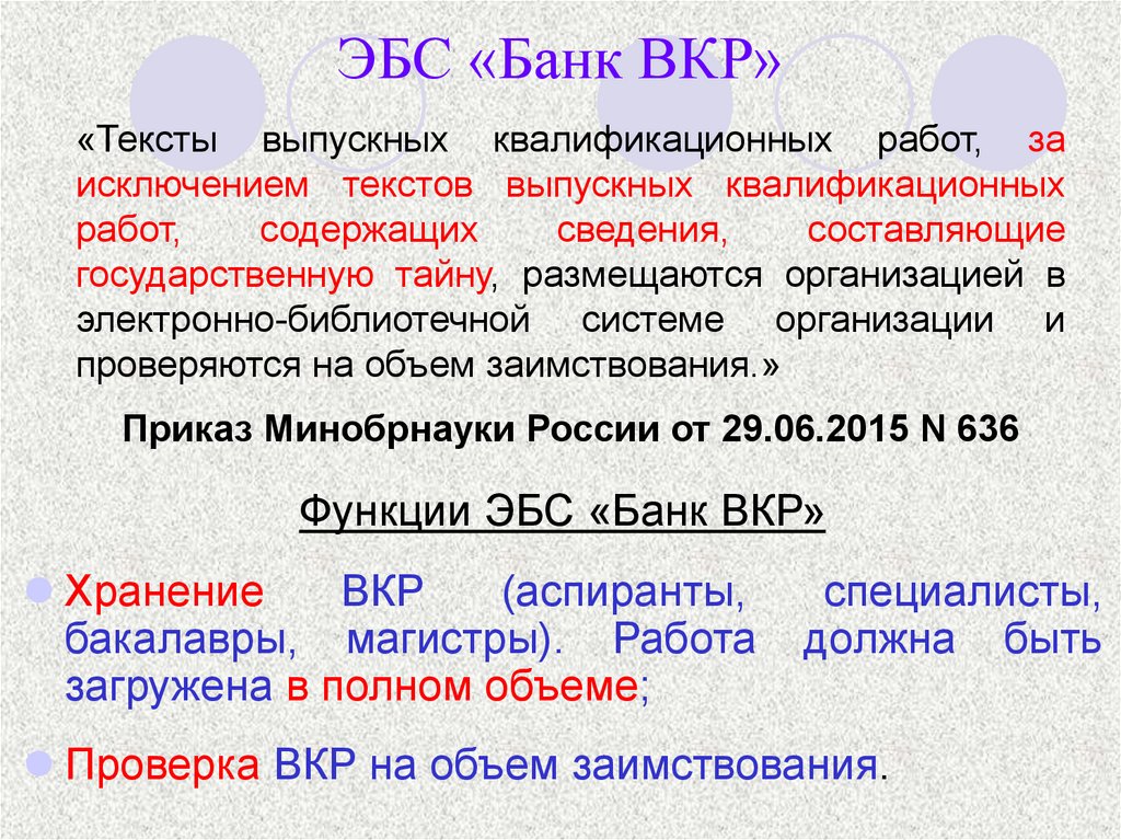 ЭБС «Банк ВКР»«Тексты выпускных квалификационных работ, за