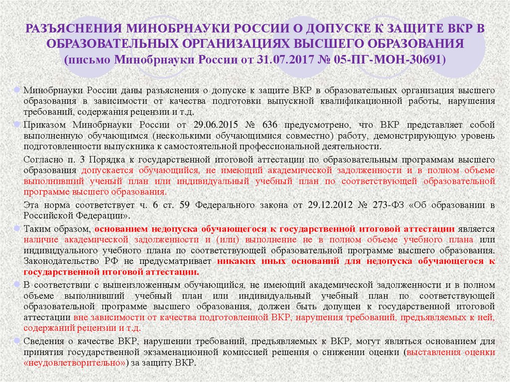 аттестации вне зависимости от качества подготовленной ВКР, нарушения требований, предъявляемых к ней,
