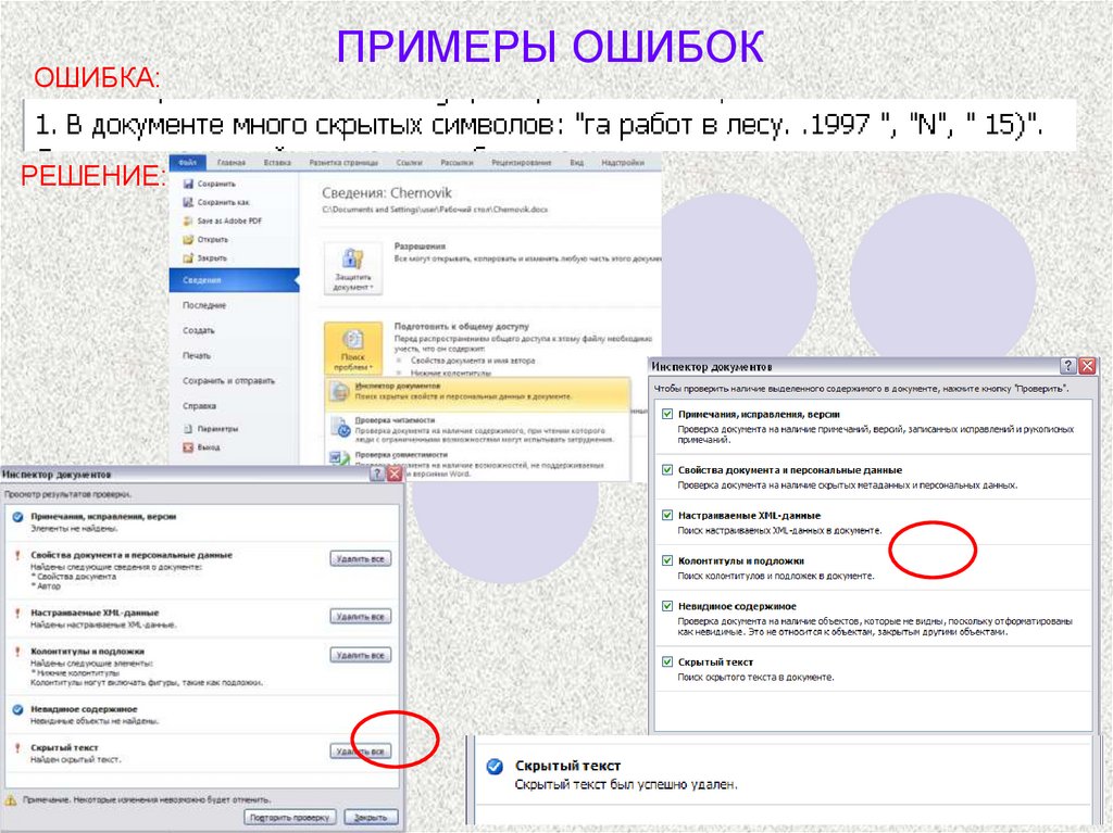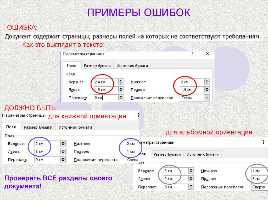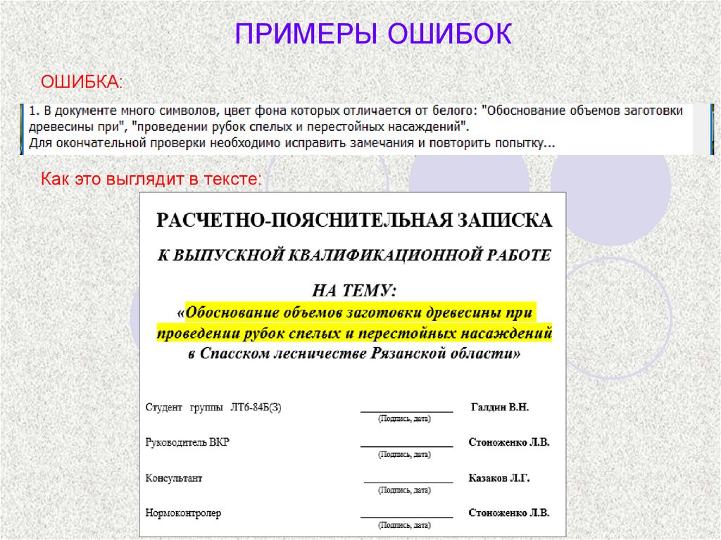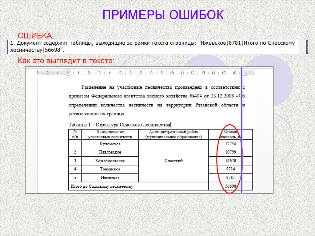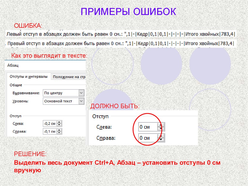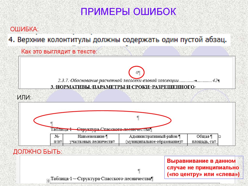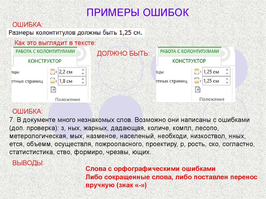 ПРИМЕРЫ ОШИБОК