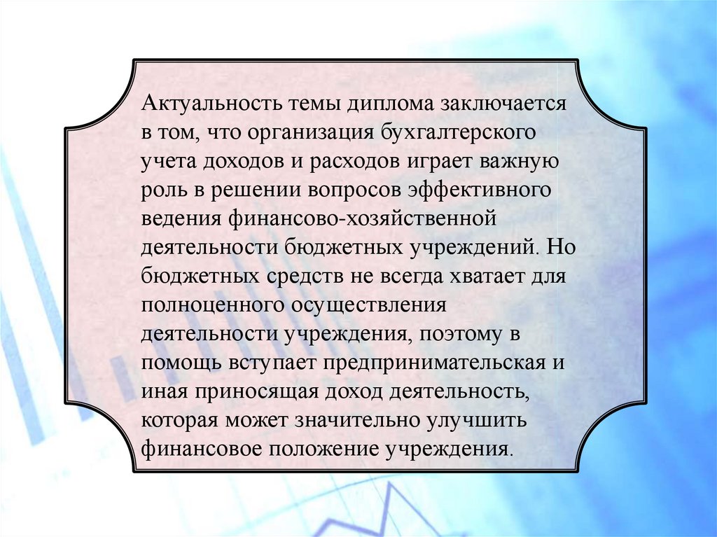 Актуальность темы диплома заключаетсяв том, что организация бухгалтерского