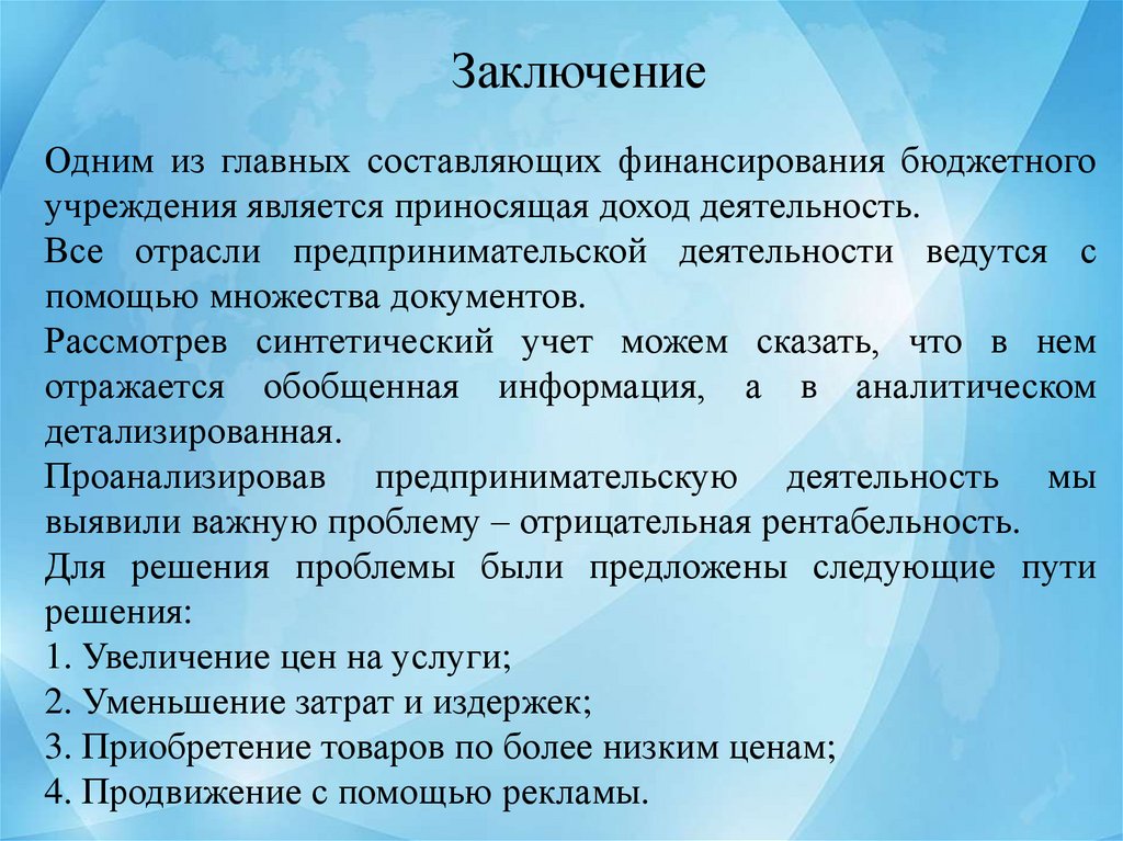 ЗаключениеОдним из главных составляющих финансирования бюджетного