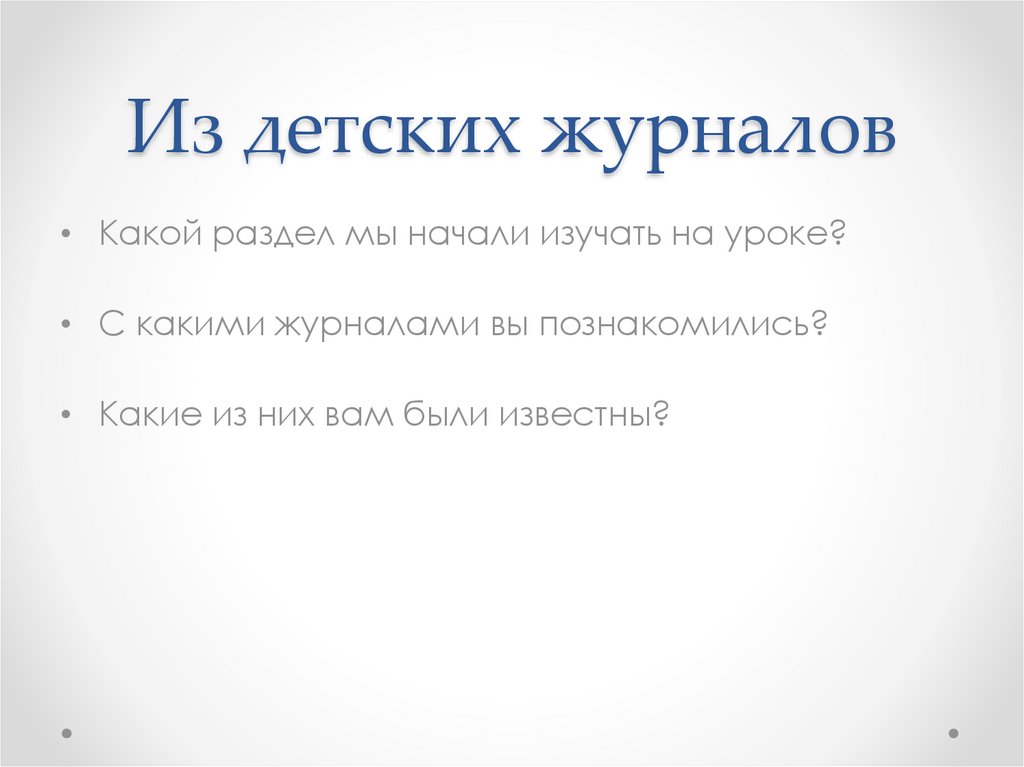 Из детских журналов• Какой раздел мы начали изучать на уроке?