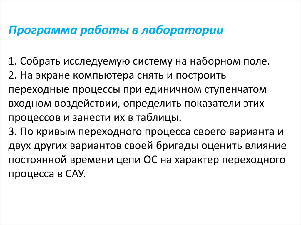 Цель работыВыяснить причины возникновения перерегулирования