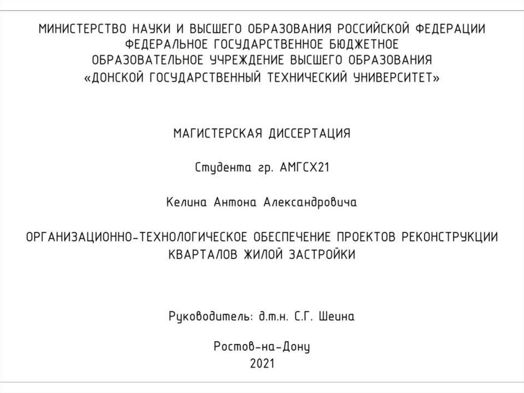 Организационно-технологическое обеспечение проектов реконструкции кварталов жилой застройки
