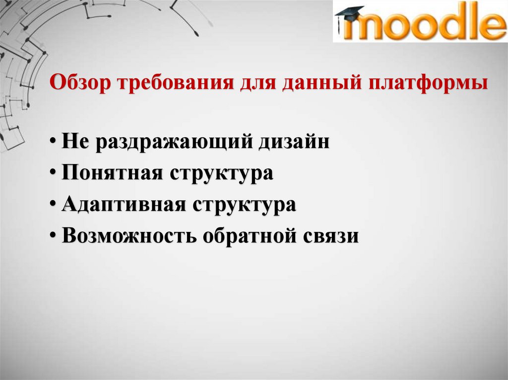 Обзор требования для данный платформы• Не раздражающий дизайн