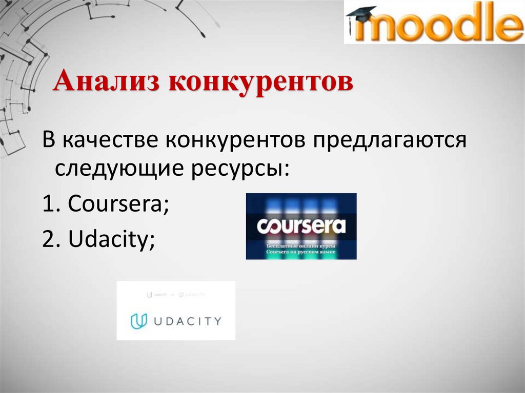 Анализ конкурентовВ качестве конкурентов предлагаются