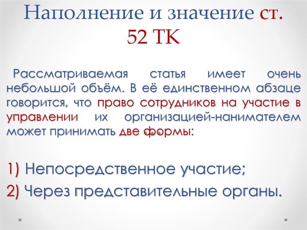 Наполнение и значение ст.52 ТК