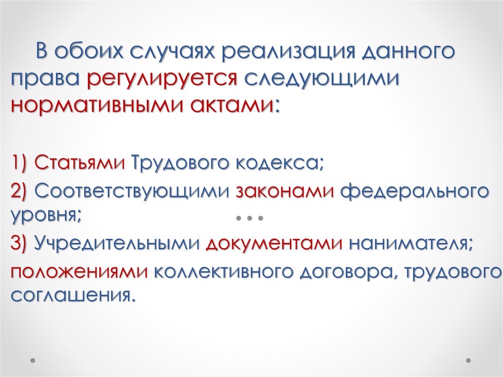 В обоих случаях реализация данногоправа регулируется следующими
