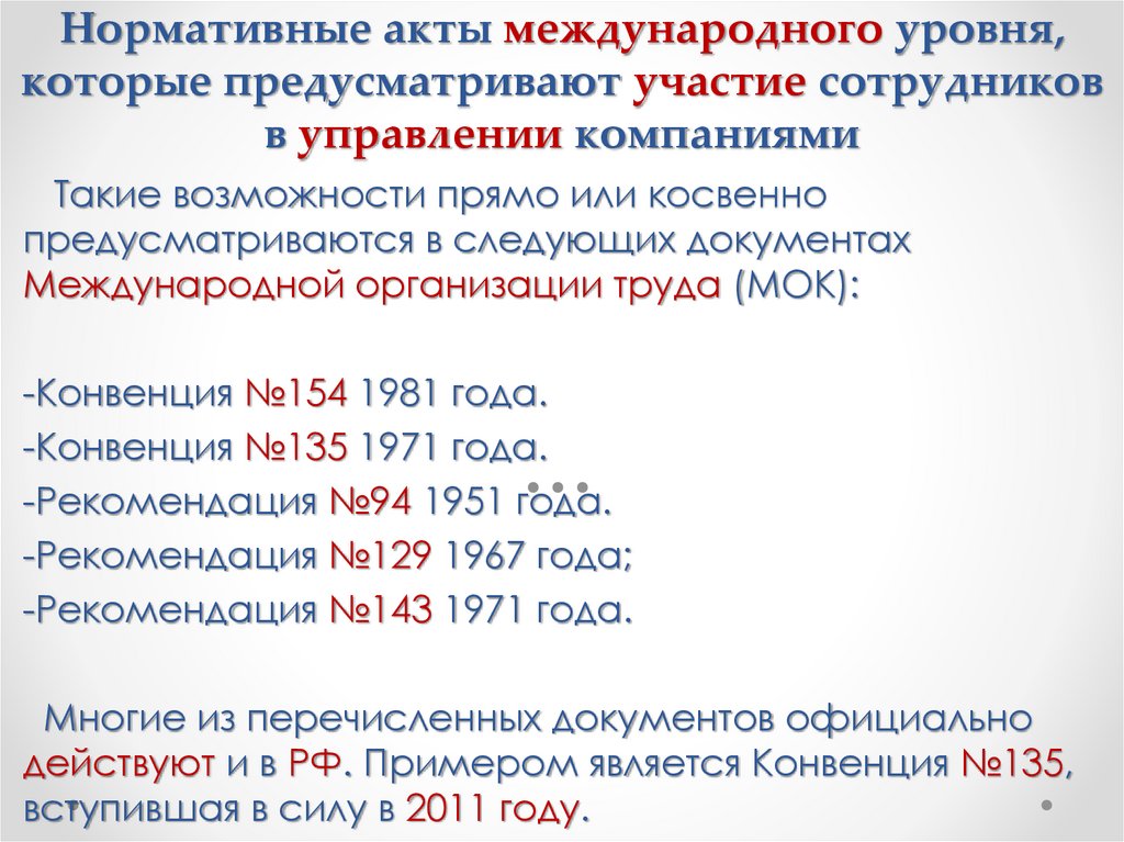 действуют и в РФ. Примером является Конвенция №135,
