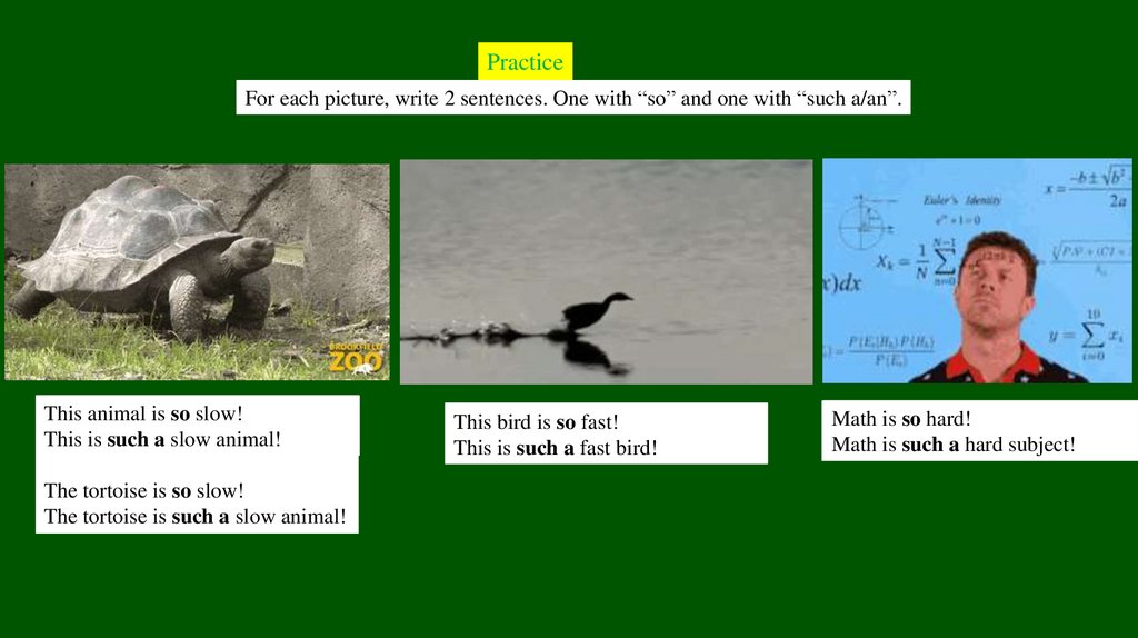 PracticeFor each picture, write 2 sentences. One with “so” and one with “such a/an”.