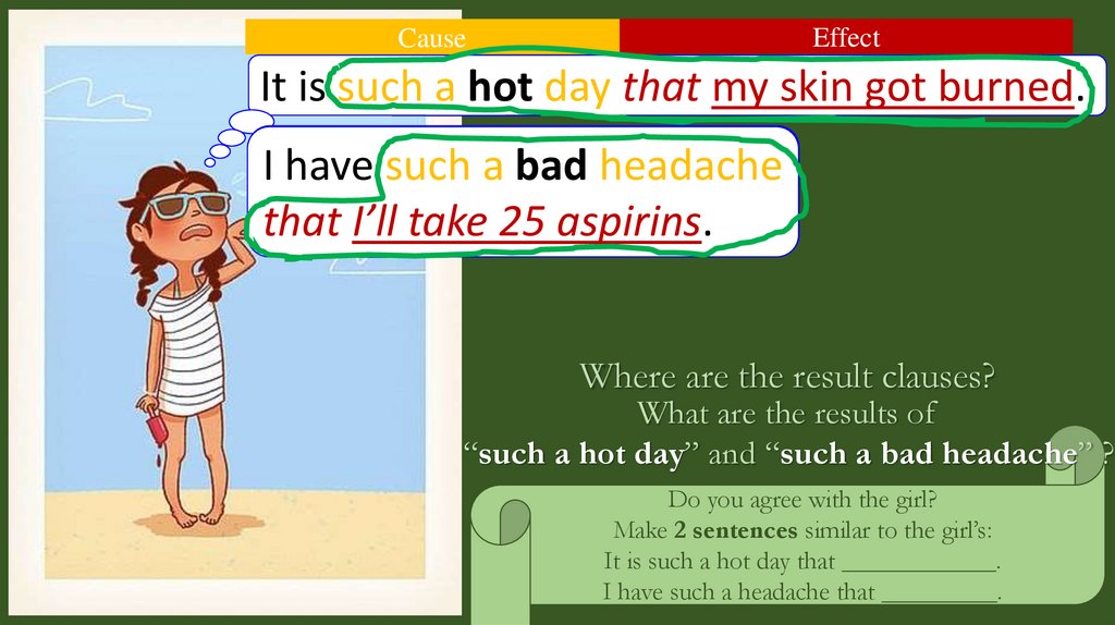 “such a hot day” and “such a bad headache” ?