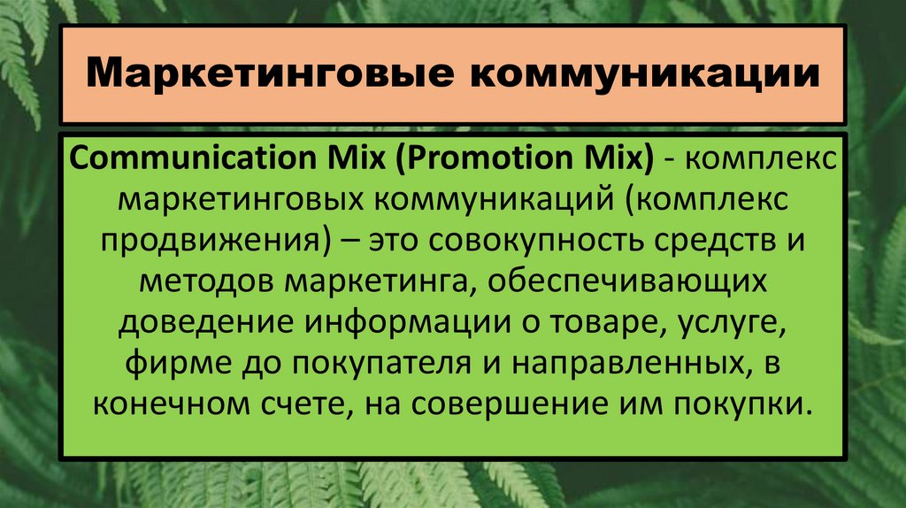 Маркетинговые коммуникацииCommunication Mix (Promotion Mix) - комплекс