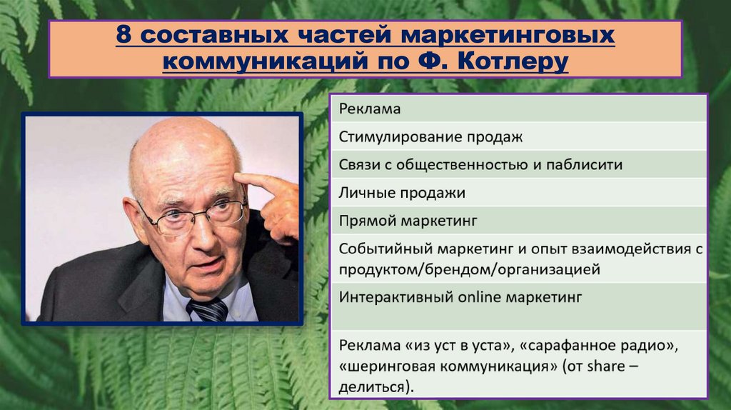8 составных частей маркетинговыхкоммуникаций по Ф. Котлеру