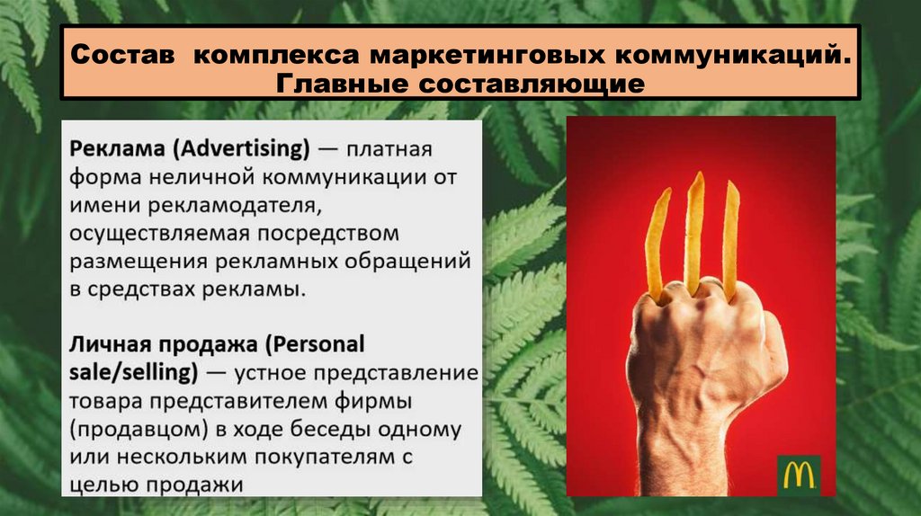 Состав комплекса маркетинговых коммуникаций.Главные составляющие