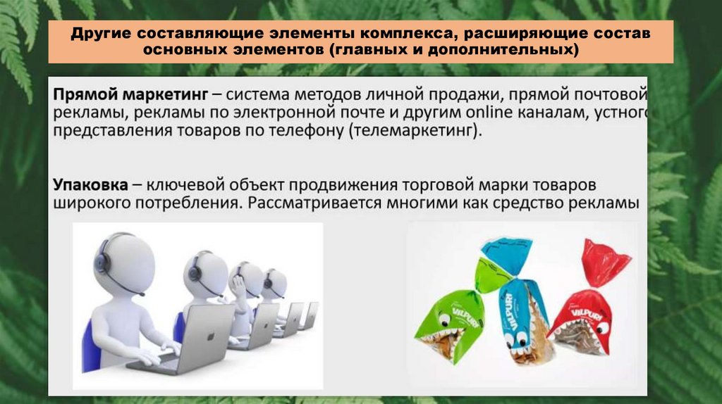 Другие составляющие элементы комплекса, расширяющие составосновных элементов (главных и дополнительных)