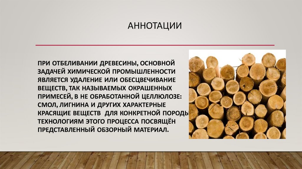 АННОТАЦИИПРИ ОТБЕЛИВАНИИ ДРЕВЕСИНЫ, ОСНОВНОЙ